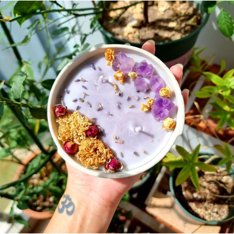 Nến thơm năng lượng candle healing kết hợp với đá thach anh và thảo mộc