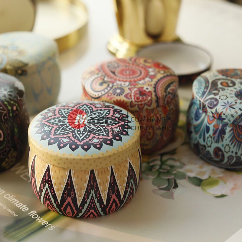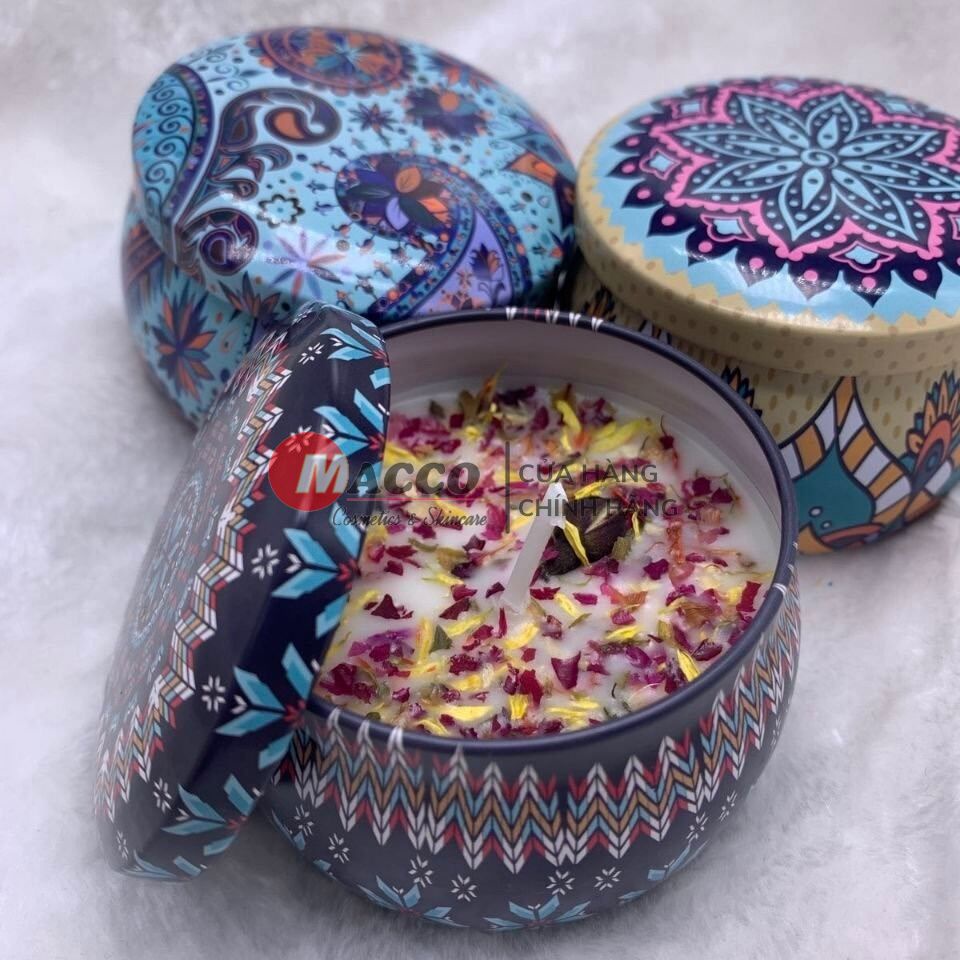 Nến thơm phong cách Bắc Âu hộp thiếc cao cấp - Nến ép hoa thơm họa tiết retro độc đáo sang trọng
