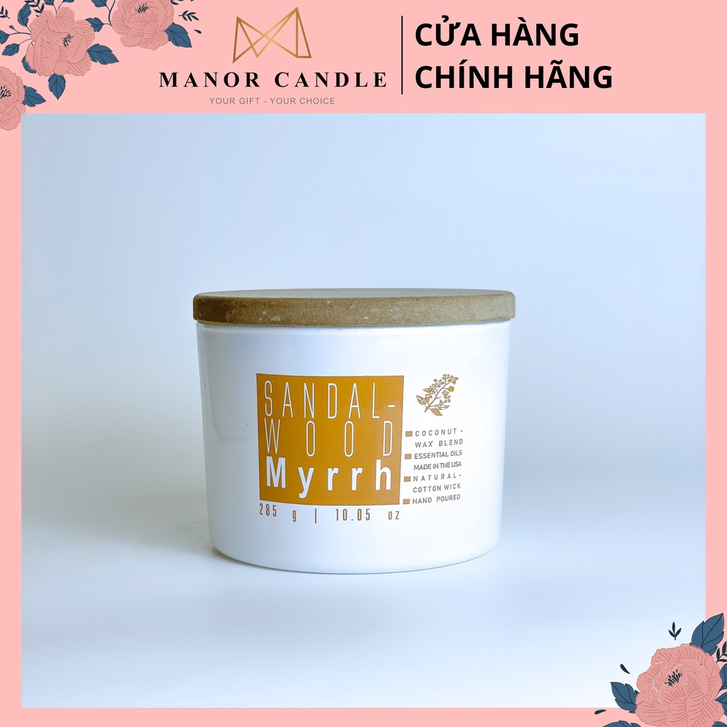 Giới thiệu Nến thơm phòng cao cấp Sandalwood Myrrh, hương gỗ 12oz 2 bấc
