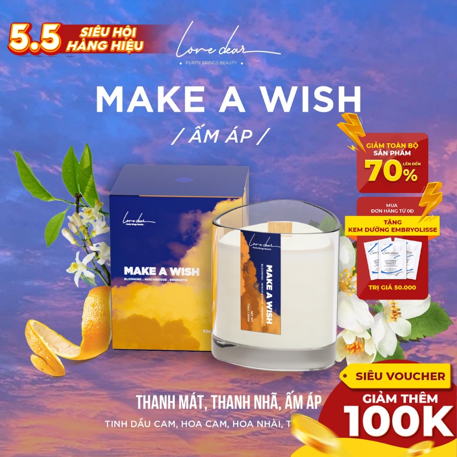 Nhà cửa & Đời sống > Trang trí nhà cửa > Nến & đồ đựng nến || Nến Thơm Phòng Cao Cấp LoveDear Make A Wish Từ Tinh Dầu Thiên Nhiên và Sáp Cọ - Trang Trí Decor 200gCòn hàng