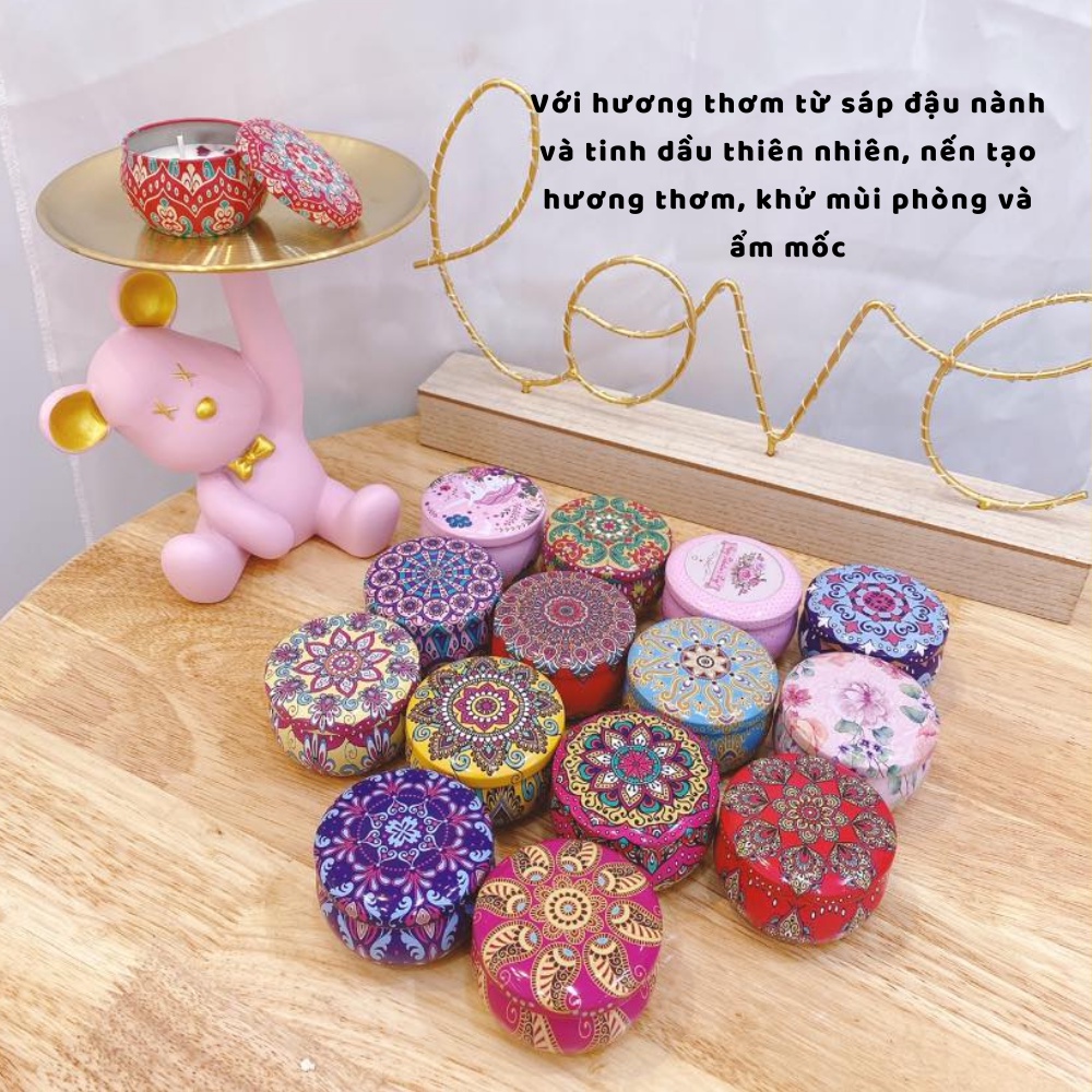 - Nến thơm không chỉ khử mùi phòng mà còn có công dụng decor trang trí nhà cửa, với họa tiết trang trí đẹp, bắt mắt và còn được điểm thêm hoa khô thiên nhiên.