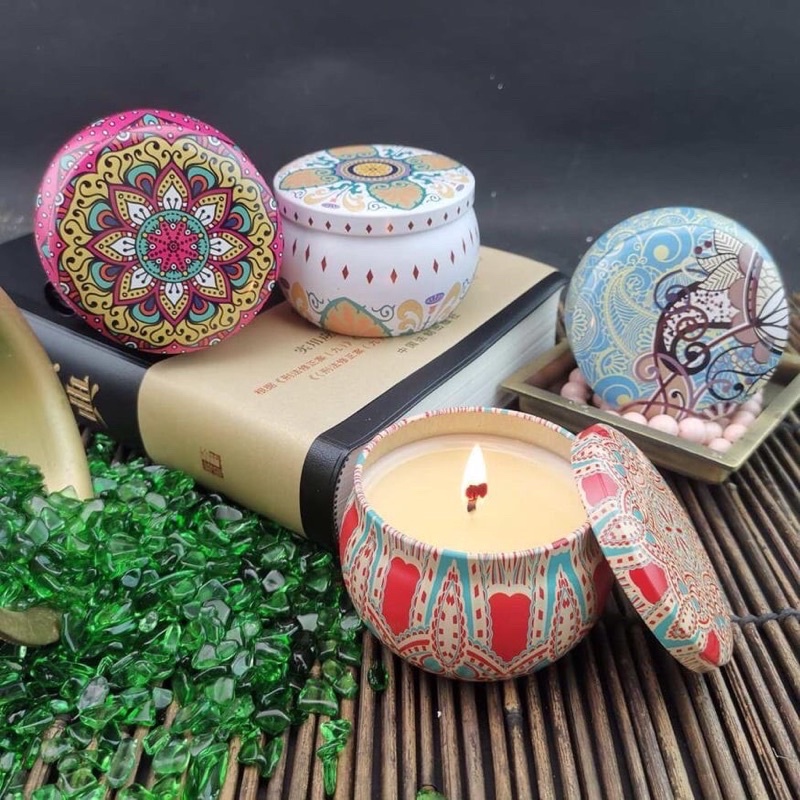 - Nến thơm có vỏ hộp làm từ thiếc trang trí bắt mắt, sang trọng