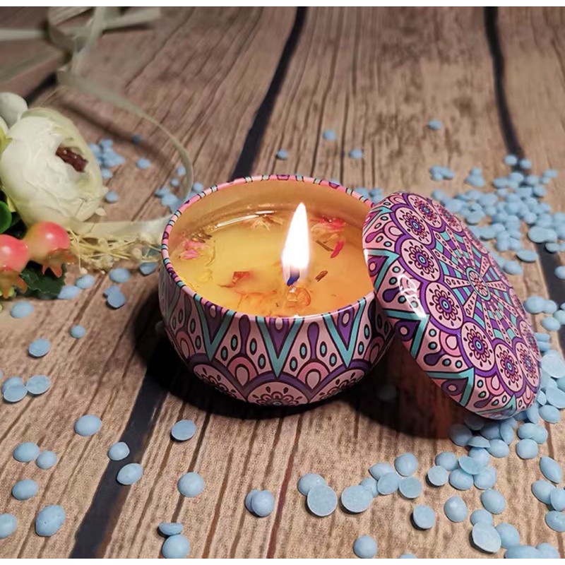- Nến thơm có vỏ hộp làm từ thiếc trang trí bắt mắt, sang trọng