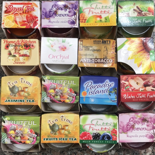 Có nhiều mùi hương để lựa chọn: Hoa mộc lan vàng, hồng, xanh; hoa hồng; hoa oải hương; hương trà nhài, trà hồng, trà xanh; hương caphe, hương các loại quả,...