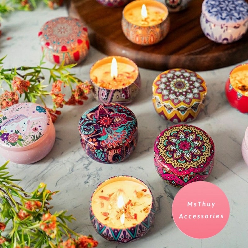 - Nến thơm có vỏ hộp làm từ thiếc trang trí bắt mắt, sang trọng