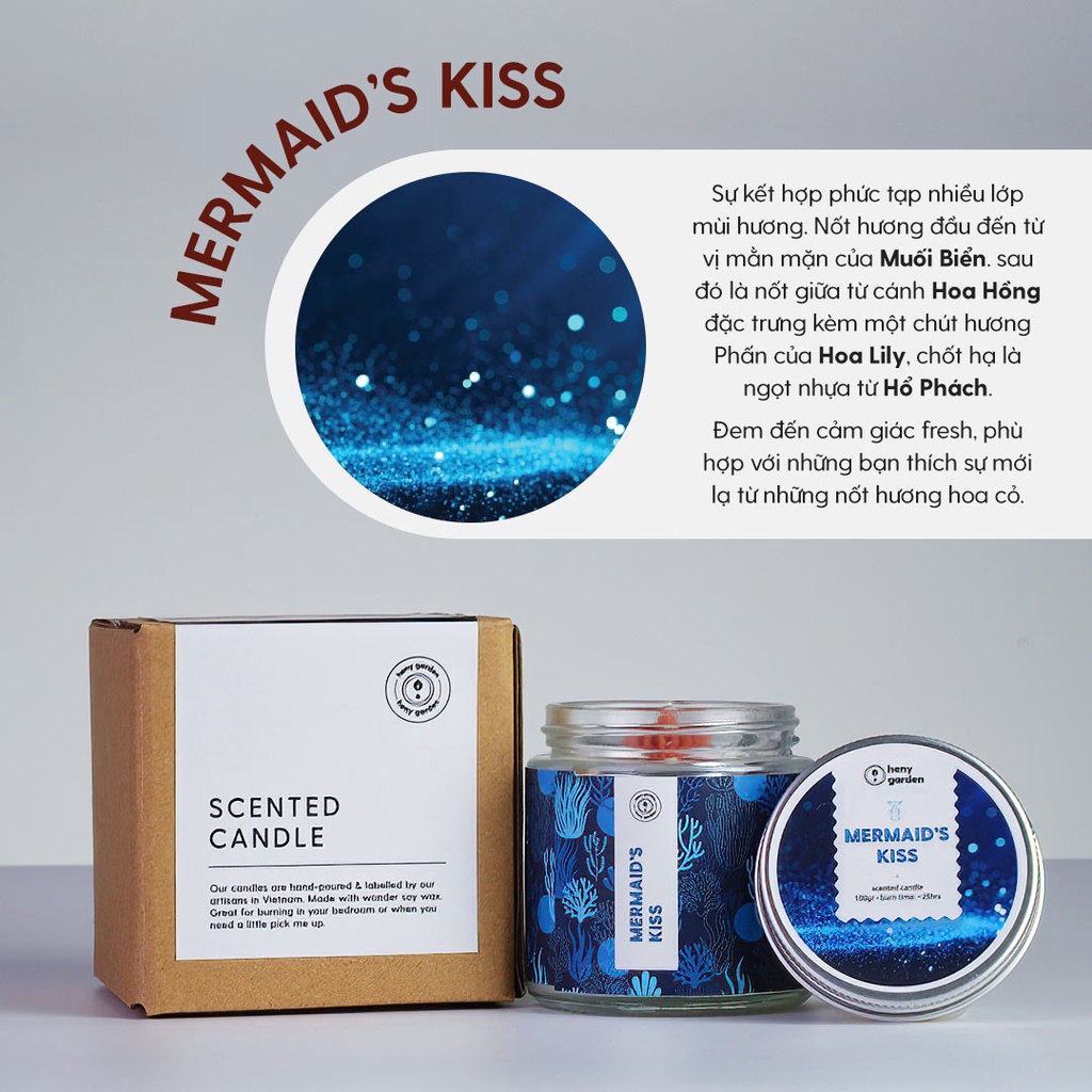✔️ Mermaid’s Kiss: Sự kết hợp phức tạp nhiều lớp mùi hương. Nốt hương đầu đến từ vị mằn mặn của Muối Biển. sau đó là nốt giữa từ cánh Hoa Hồng đặc trưng kèm một chút hương Phấn của Hoa Lily, chốt hạ là ngọt nhựa từ Hổ Phách.