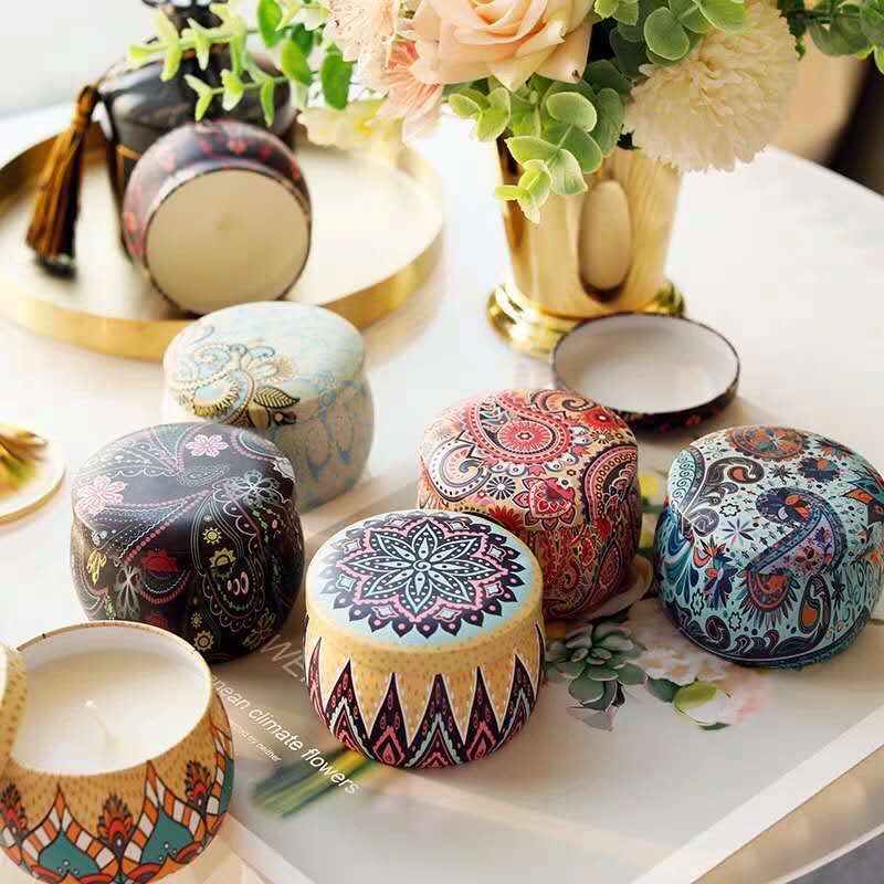- Nến thơm có vỏ hộp làm từ thiếc trang trí bắt mắt, sang trọng