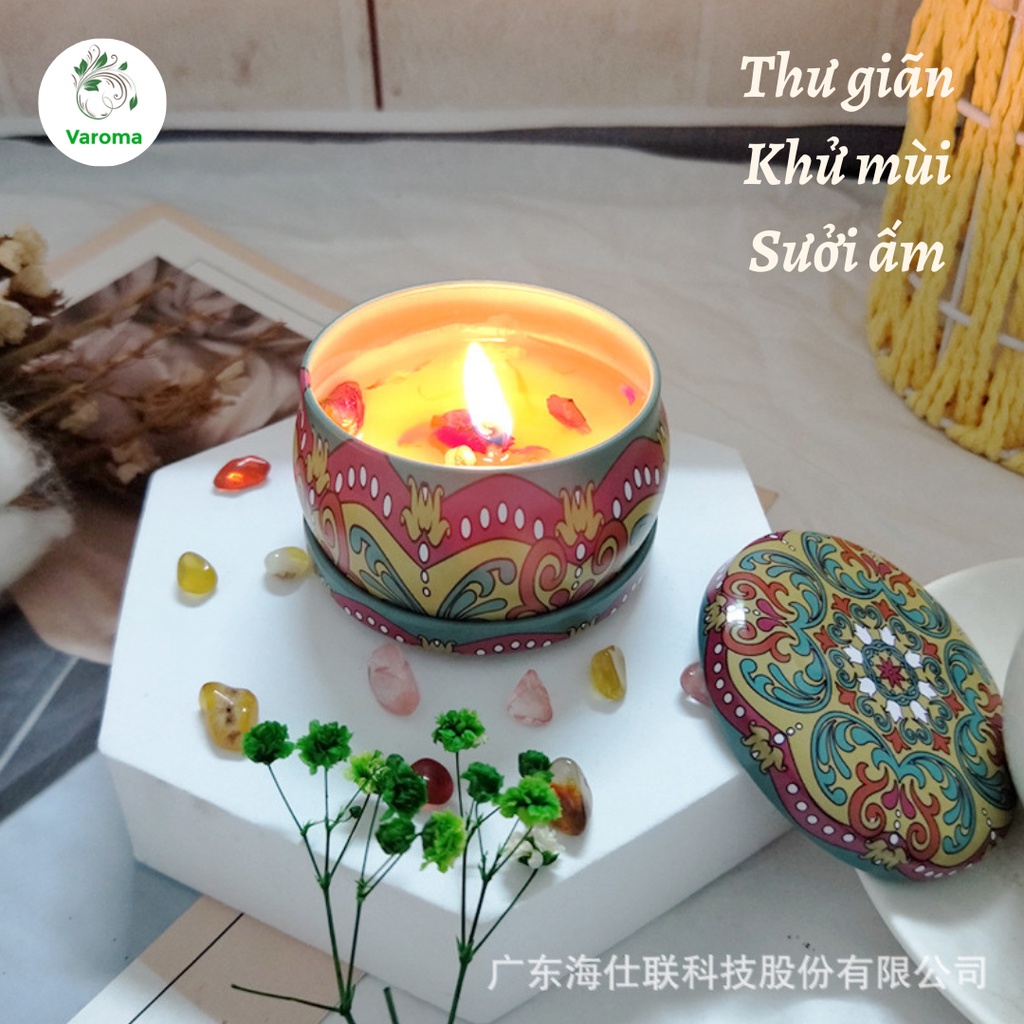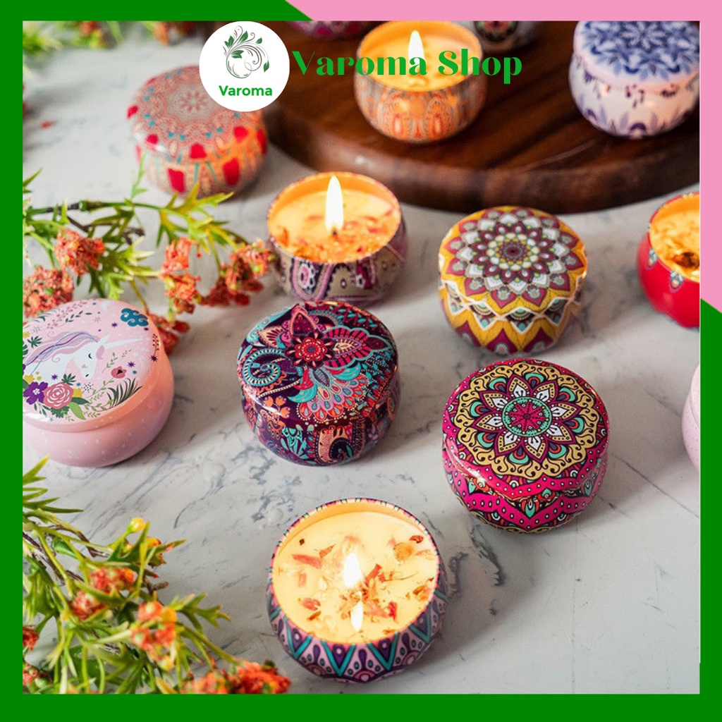 Giới thiệu Nến Thơm Phòng Thiên Nhiên Hoa Khô Tinh Dầu Để Phòng Thư Giãn Hoa Văn Hộp Thiếc NEN07 NEN08