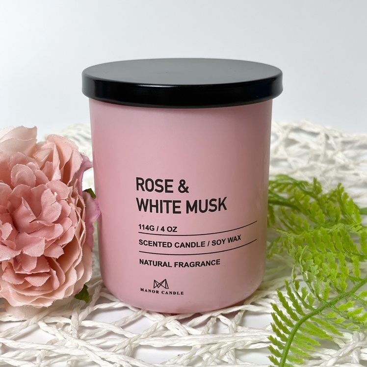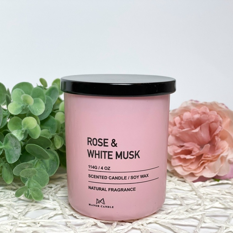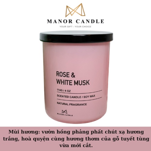 Nến thơm Rose & White Musk chính hãng Manor Candle, size 4 oz 114g