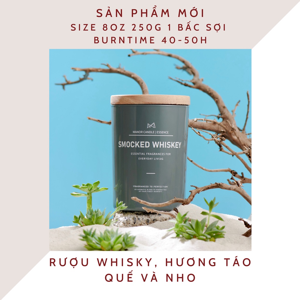 Giới thiệu [Mã LIFE20KALL giảm 10% đơn 50K] Nến thơm SMOCKED WHISKEY cao cấp không khói an toàn, sáp cọ size 8oz 1 bấc 250gram
