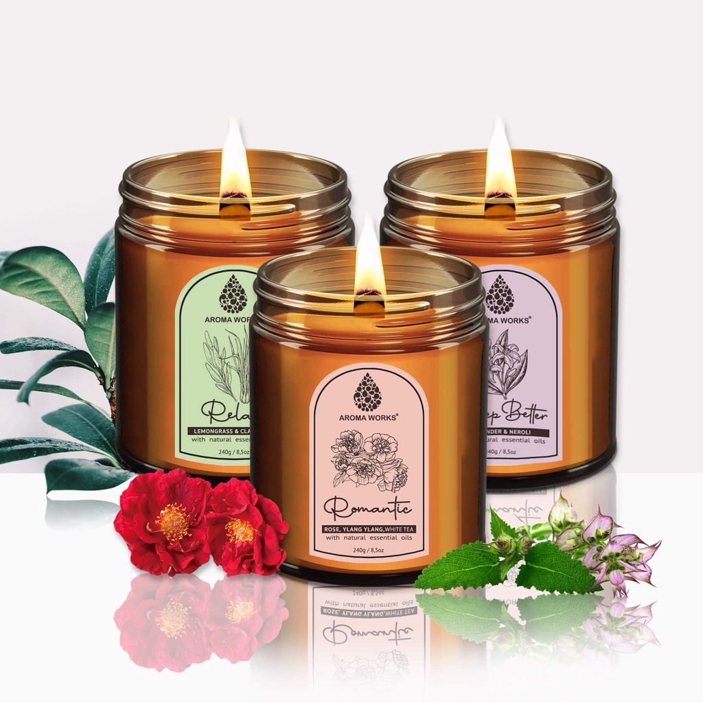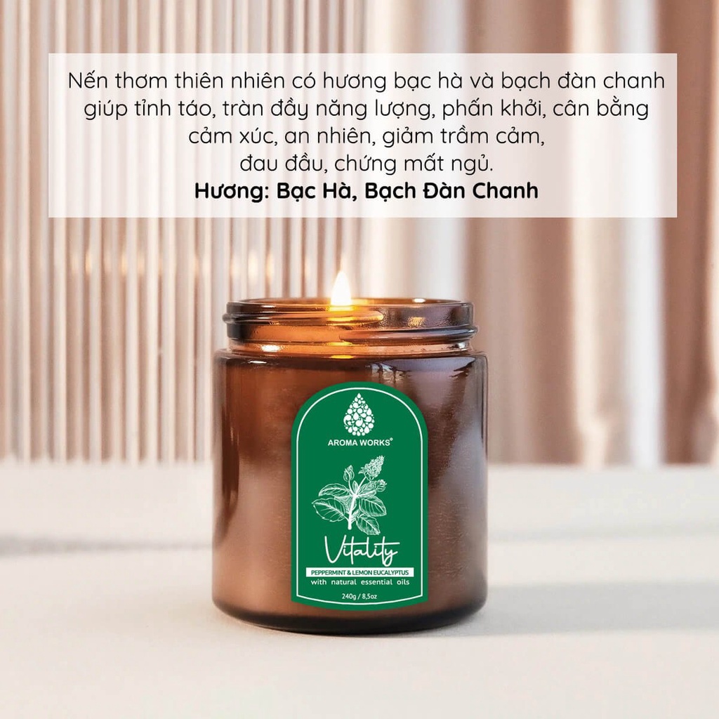 Giới thiệu Nến Thơm Thiên Nhiên Aroma Works Aromatherapy Scented Candle 240g