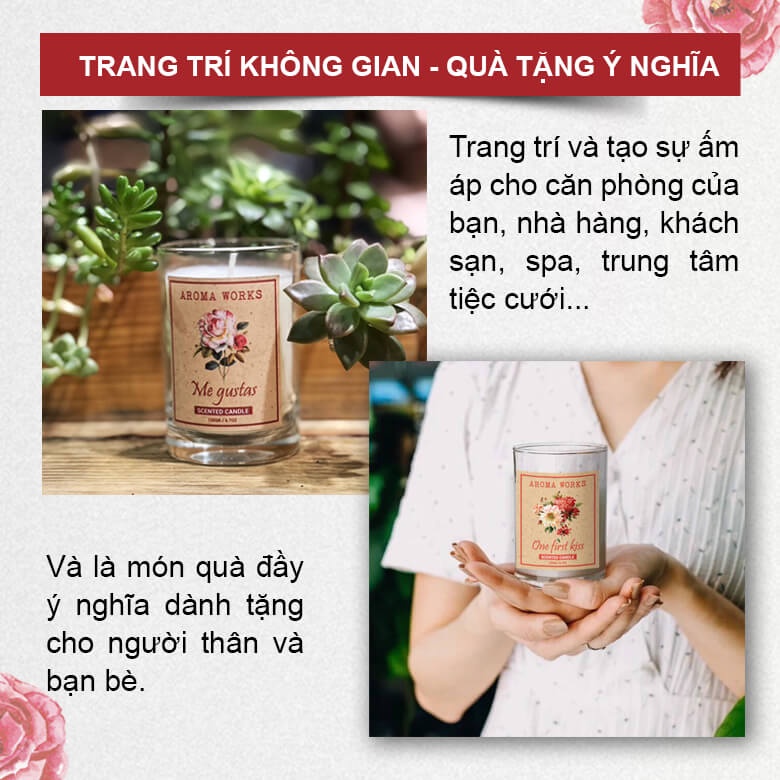 Giới thiệu Nến Thơm Thiên Nhiên Aroma Works Natural Scented Candle - One First Kiss