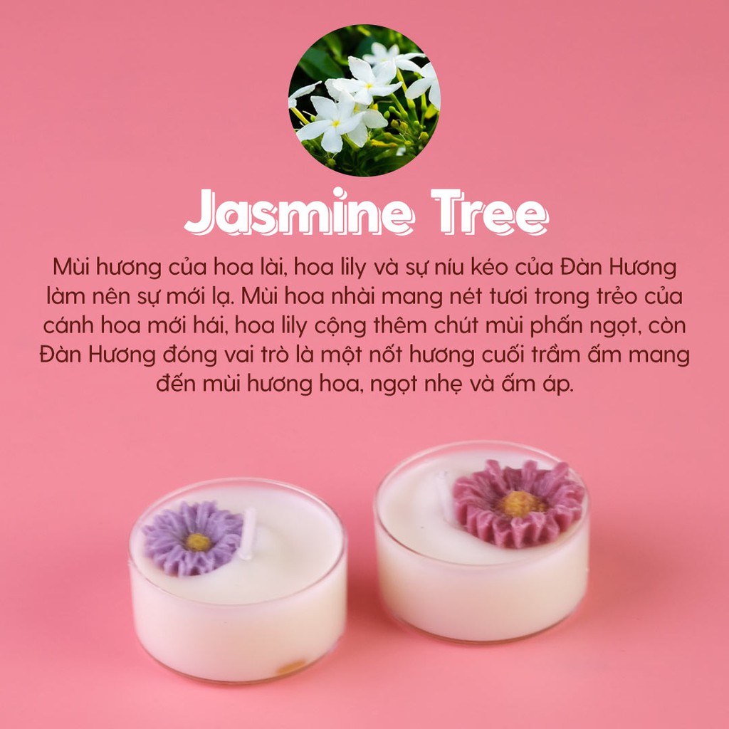 ✔️ Jasmine Tree: mùi hương của hoa lài, hoa lily và sự níu kéo của Đàn Hương làm nên sự mới lạ. Mùi hoa nhài mang nét tươi trong trẻo của cánh hoa mới hái, hoa lily cộng thêm chút mùi phấn ngọt, còn Đàn Hương đóng vai trò là một nốt hương cuối trầm ấm mang đến mùi hương hoa, ngọt nhẹ và ấm áp.