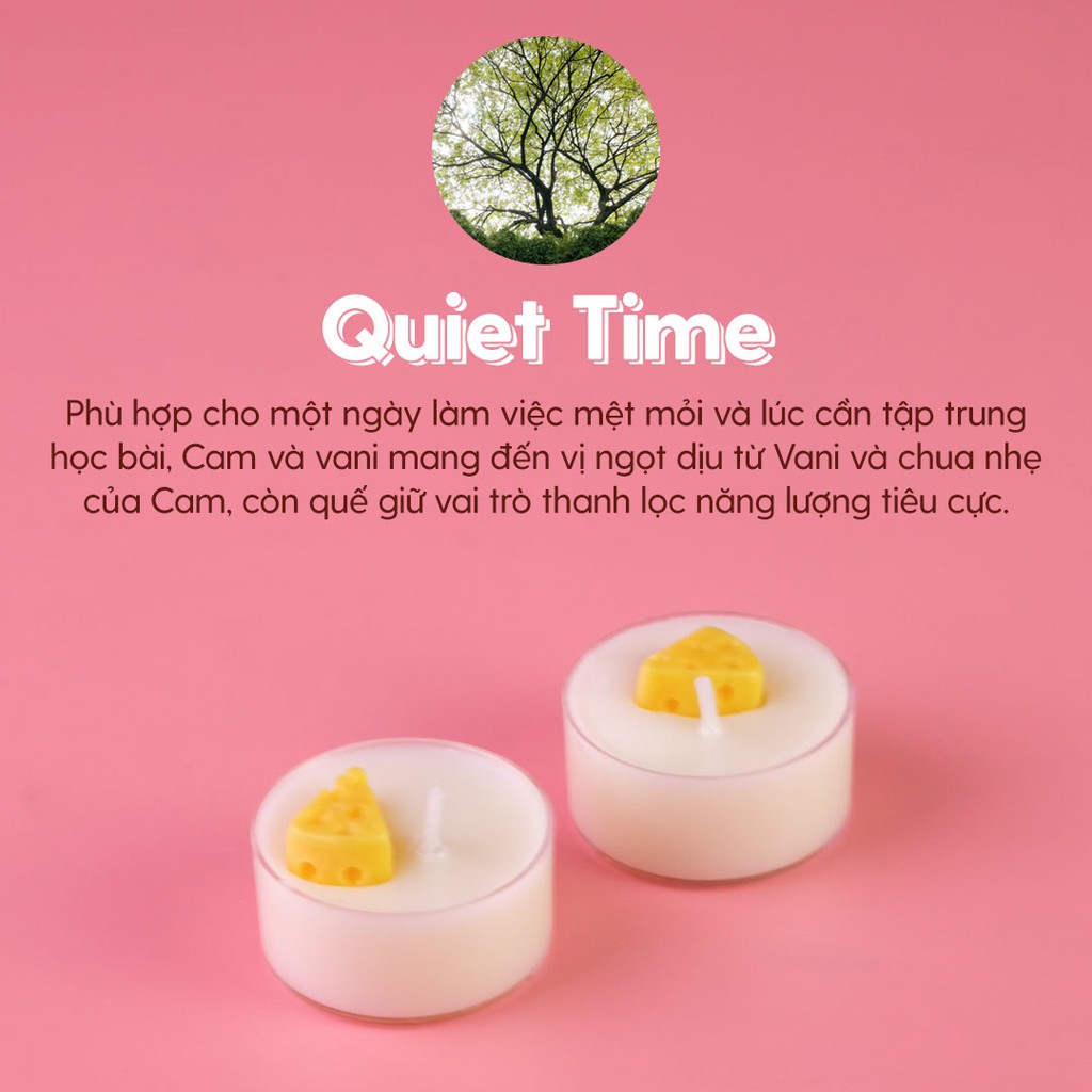 ✔️ Quiet Time: phù hợp cho một ngày làm việc mệt mỏi và lúc cần tập trung học bài, Cam và vani mang đến vị ngọt dịu từ Vani và chua nhẹ của Cam, còn quế giữ vai trò thanh lọc năng lượng tiêu cực.