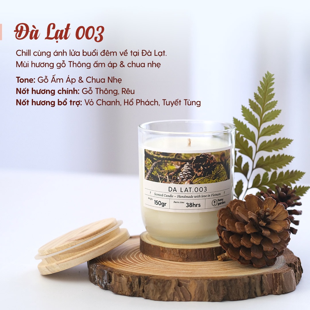 Nến Thơm Thư Giãn Heny Garden Mùi Dễ Ngủ Tặng Kèm Đế Gỗ Dành Cho Phòng Vừa Và Nhỏ
