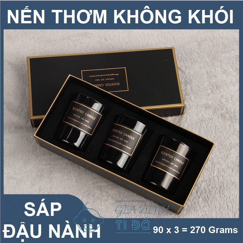 Thành phần chính từ sáp đậu nành, tinh dầu thiên nhiên và hương liệu an toàn, không chứa paraben độc hại nên các bạn có thể yên tâm đốt nến tận hưởng mùi hương mà không lo sẽ làm hại đến sức khoẻ nè.Bộ sản phẩm bao gồm 3 hủ nến có tổng khối lượng là 270 grams ( chênh lệch 50 grams), gồm 3 màu sau Lê Anh + Muối Biển + Lan Nam Phi