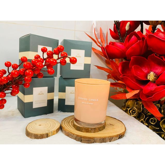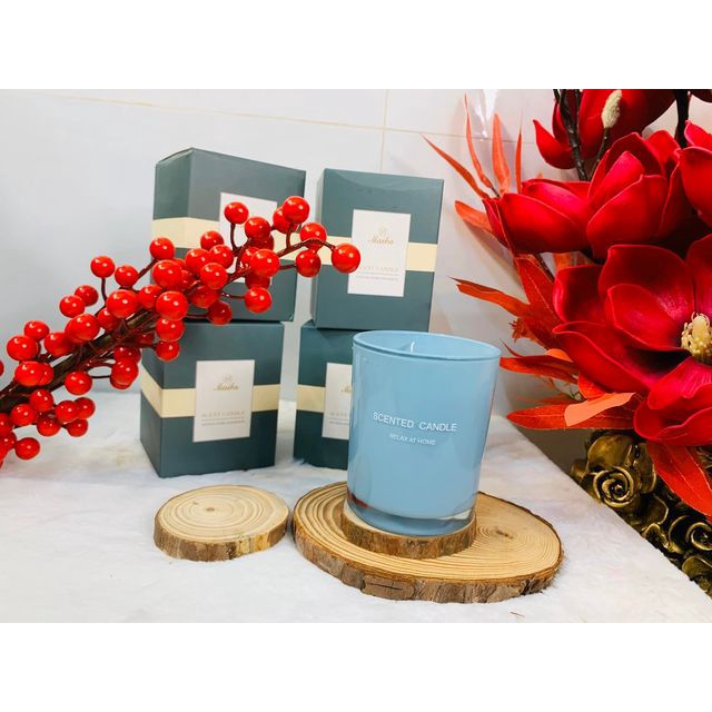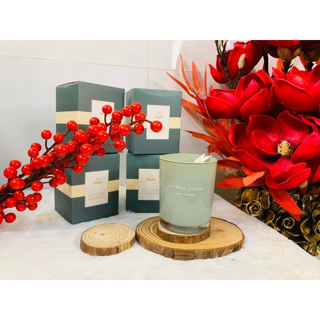 - Nguyên liệu của nến thơm: Làm từ sáp đậu nành thiên nhiên kết hợp với tinh dầu thơm thư giãn, thân thiện với môi trường.
