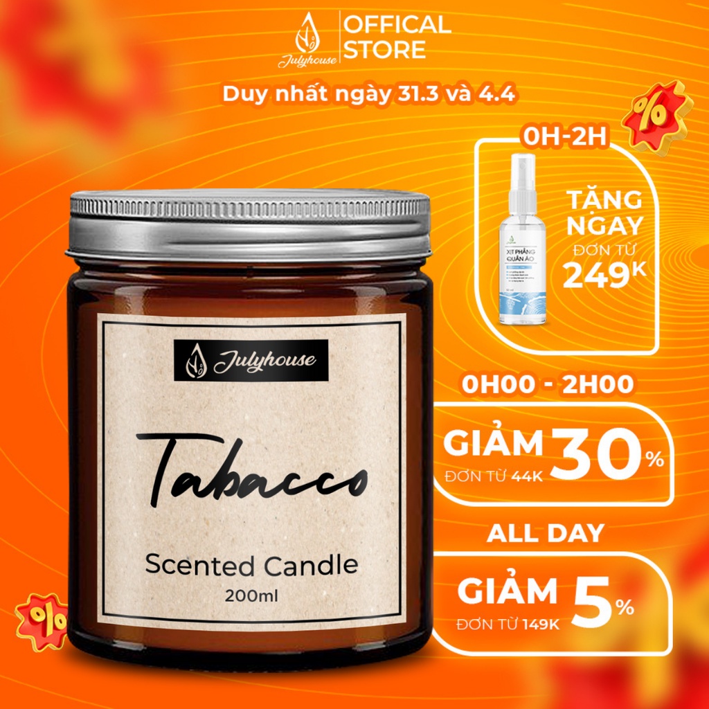 Nhà cửa & Đời sống > Trang trí nhà cửa > Nến & đồ đựng nến || [Mã LIFEMALL991 giảm 10% đơn 99K] Nến thơm Tinh dầu Tabacco Julyhouse an toàn không khói, hương thơm thư giãn dễ chịuCòn hàng