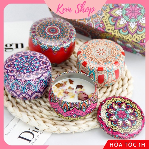 - Mỗi lọ nến thơm 80g. Kích thước 6,3*4,2cm. Đựng trong hộp thiếc hoa văn rất đẹp và an toàn.