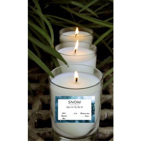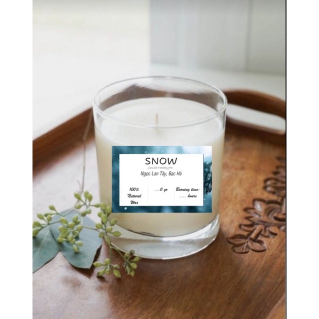 2. Bộ Nguyên liệu tự làm gồm: 1 Ly thủy tinh trong chịu nhiệt kèm Tim Cotton không khói, 1 bộ sáp cọ, 1 lọ tinh dầu Snow, 1 Tem decal tên Nến và bảng thành phần nến, 1 Bảng hướng dẫn chi tiết các bước làm