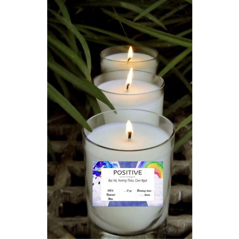 2. Bộ Nguyên liệu tự làm gồm: 1 Ly thủy tinh trong chịu nhiệt kèm Tim Cotton không khói, 1 bộ sáp cọ, 1 lọ tinh dầu Positive, 1 Tem decal tên Nến và bảng thành phần nến, 1 Bảng hướng dẫn chi tiết các bước làm