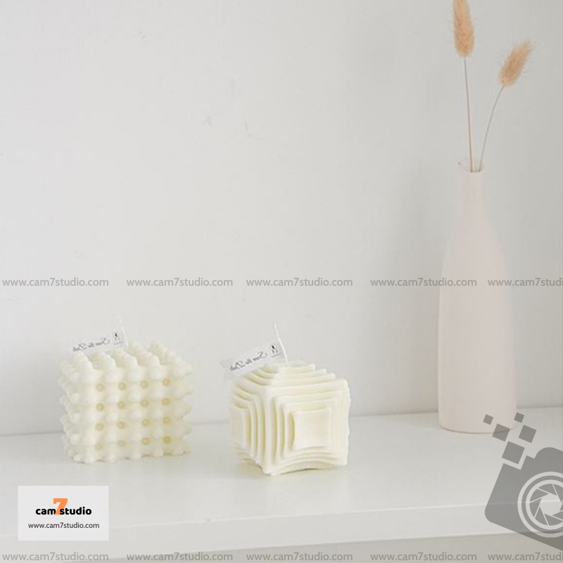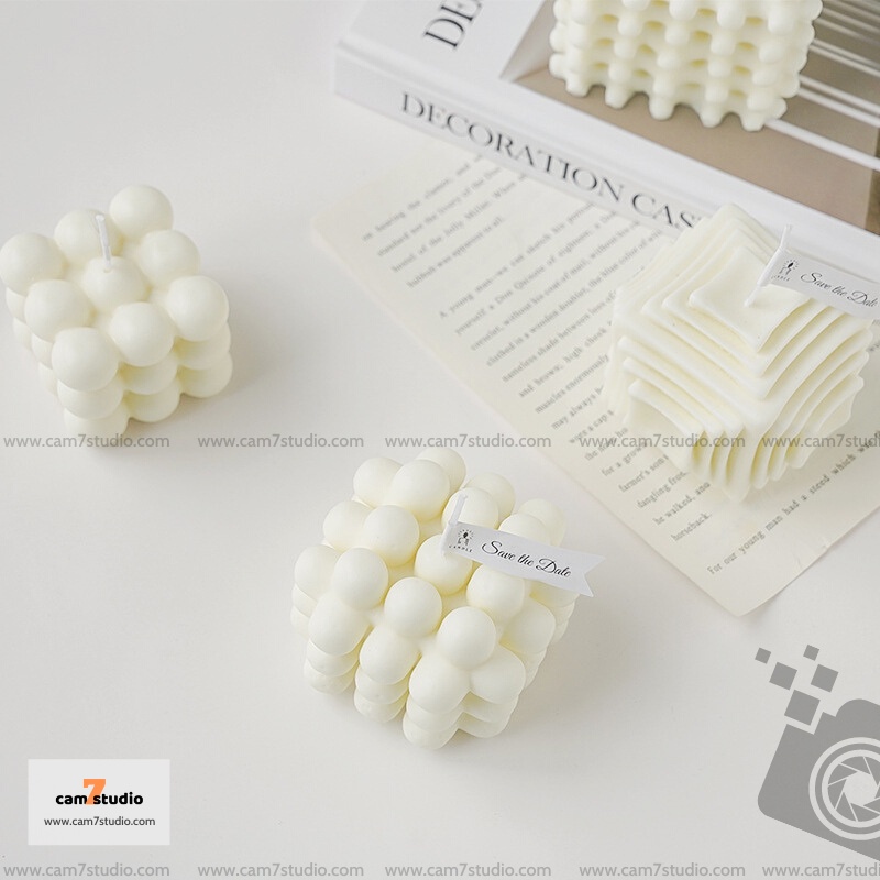 Giới thiệu Nến thơm Trắng, hình lập phương trang trí chụp ảnh, decor chụp hình - Cam7Studio.com