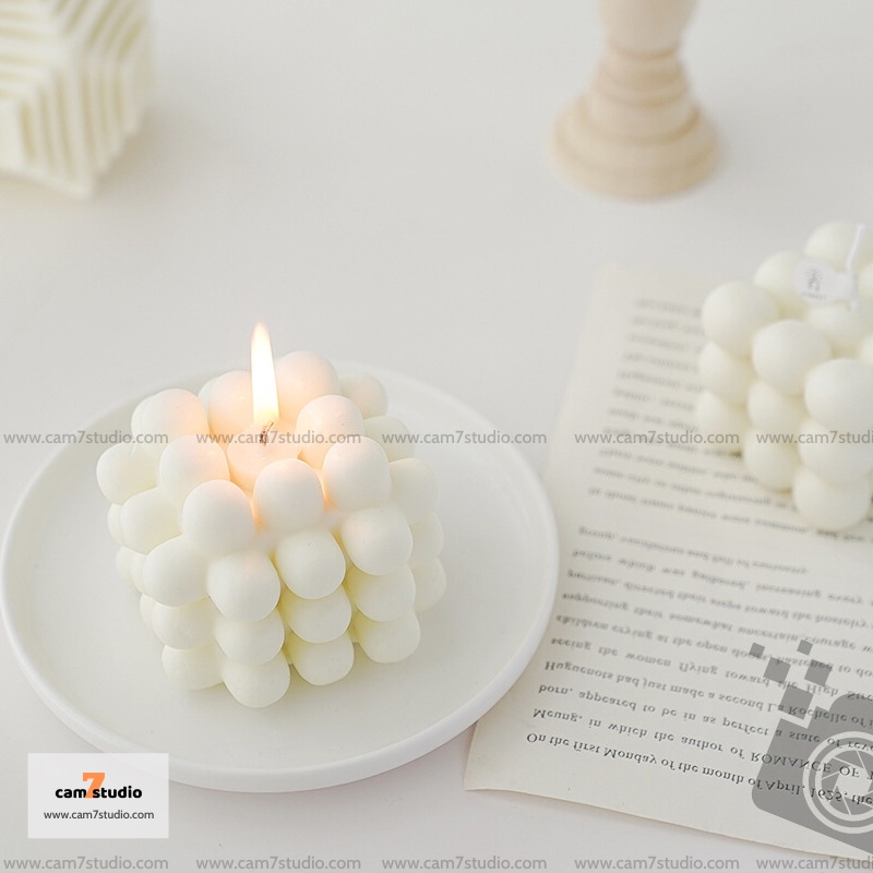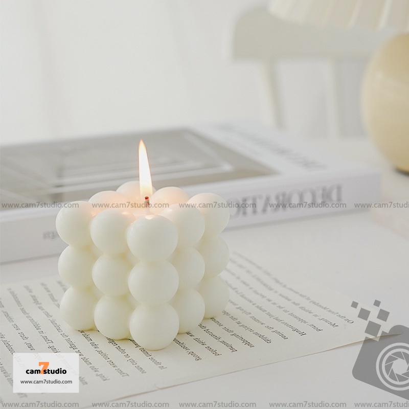 Nến thơm Trắng, hình lập phương trang trí chụp ảnh, decor chụp hình - Cam7Studio.com
