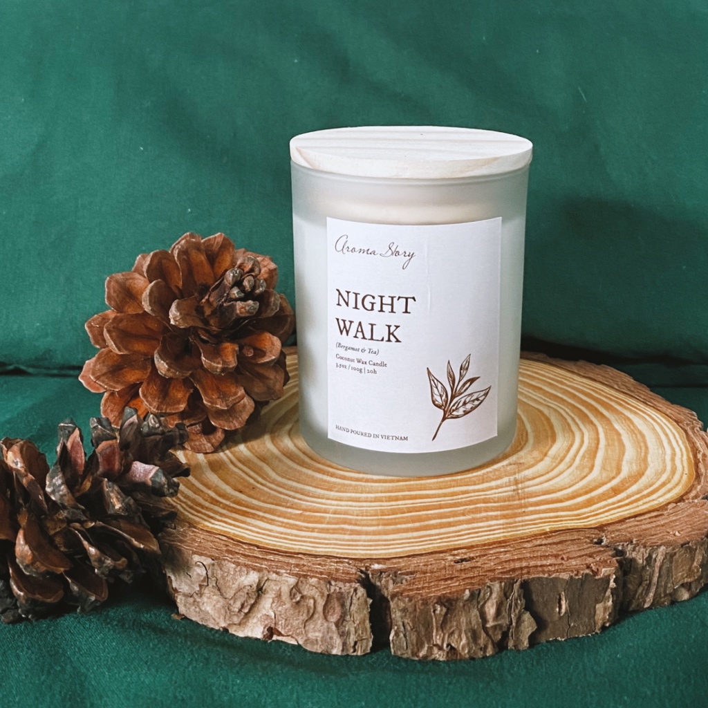 Nến thơm trang trí, cao cấp, tự nhiên Aroma Story hương trà và cam bergamot Night Walk size 100g
