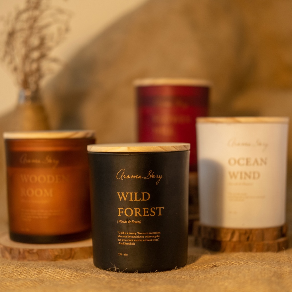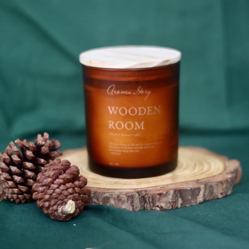Nến thơm trang trí, cao cấp, tự nhiên Aroma Story hương gỗ và robusta coffee Wooden Room size 200g