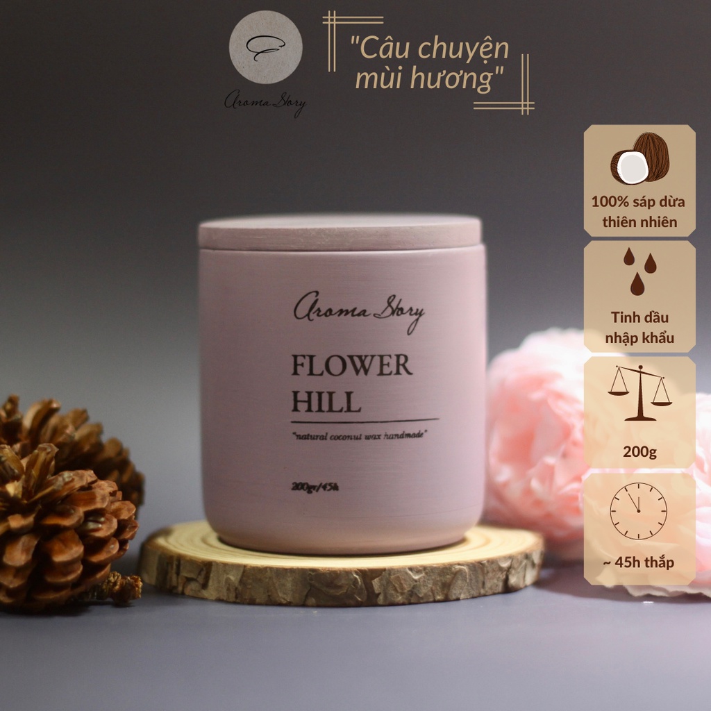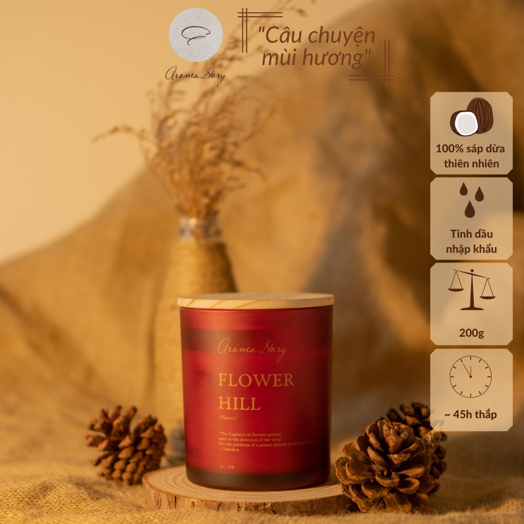 Nến thơm trang trí, cao cấp, tự nhiên Aroma Story hương hoa Flower Hill size 200g