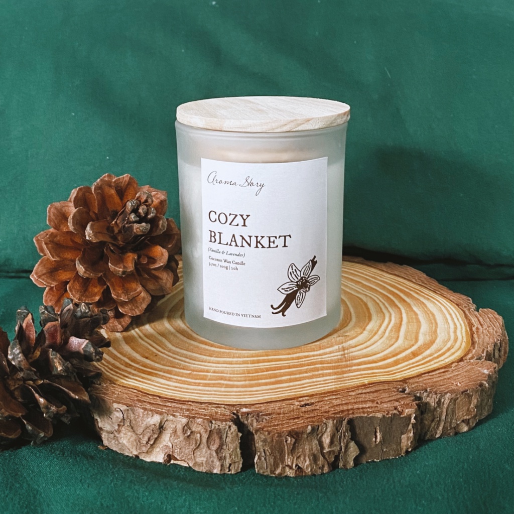 Nến thơm trang trí, cao cấp, tự nhiên Aroma Story hương vani và oải hương Cozy Blanket size 100g