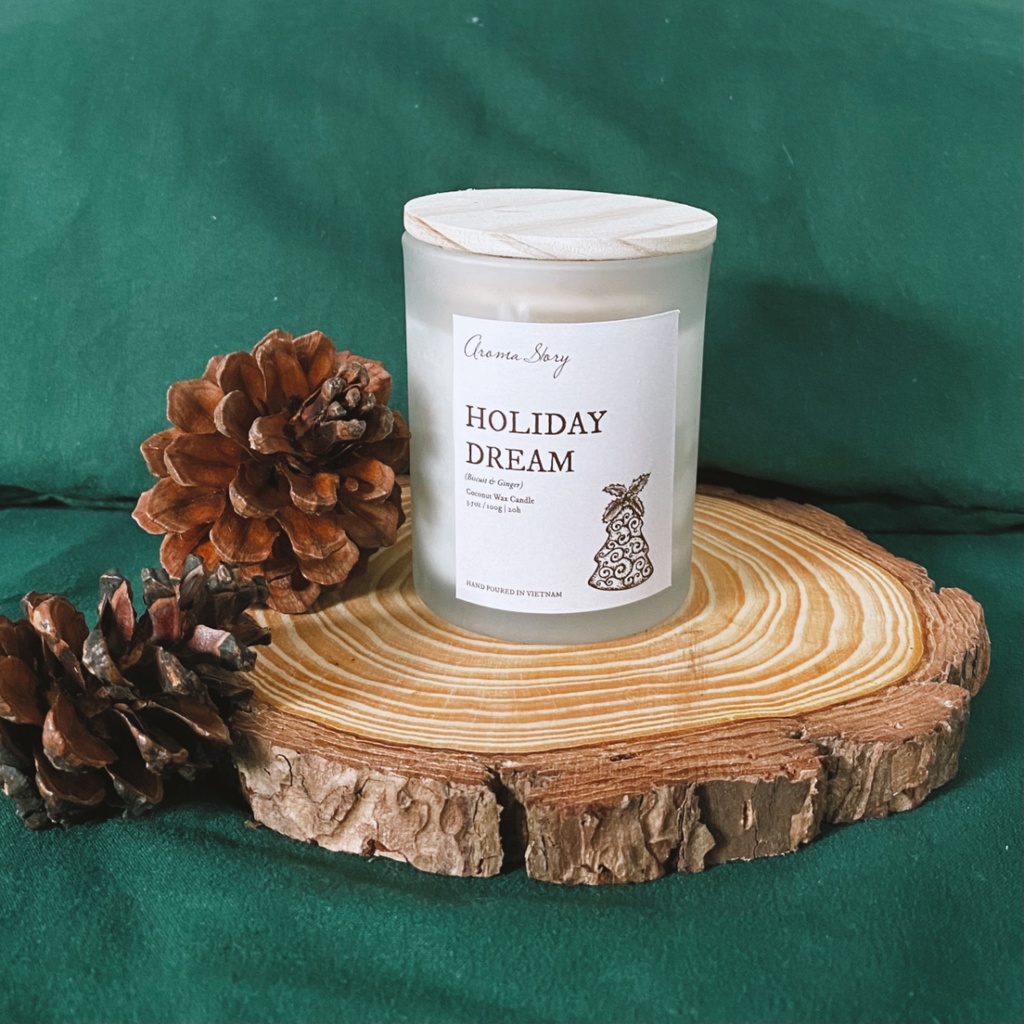 Nến thơm trang trí, cao cấp, tự nhiên Aroma Story bánh quy và gừng Holiday Dream size 100g