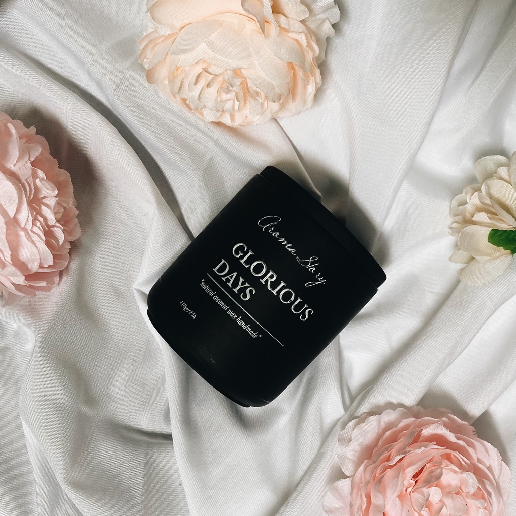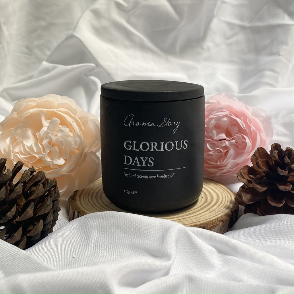 Nến thơm trang trí, cao cấp, tự nhiên Aroma Story hương trầm hương và hoa linh lan Glorious Days size 110g