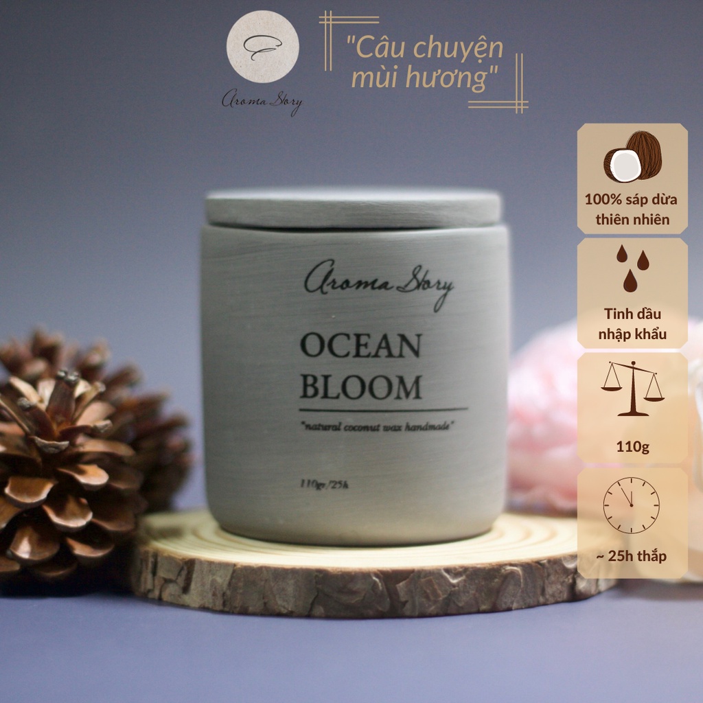 Nến thơm Ocean Bloom được Aroma Story lấy cảm hứng từ hương nước hoa nổi tiếng Dior Sauvage. Mùi hương lấy ý tưởng từ những bối cảnh hoang dã, tạo nên sự tươi mát từ cam Bergamot ngon ngọt với cay nồng của tiêu Tứ Xuyên kết hợp cùng hương hoa Lavender sắc sảo bao trùm. Nốt hương cuối cùng đọng lại là long diên hương - mùi hương quyến rũ cuốn hút bởi chút hương tự nhiên từ biển cả và hương vani ngọt ngào. Là một hương thơm mạnh mẽ và khó cưỡng.- Tầng hương đầu: hương vị của cam Bergamot mang đến sự nhẹ nhàng, tươi mới, mát mẻ và tràn đầy năng lượng.
