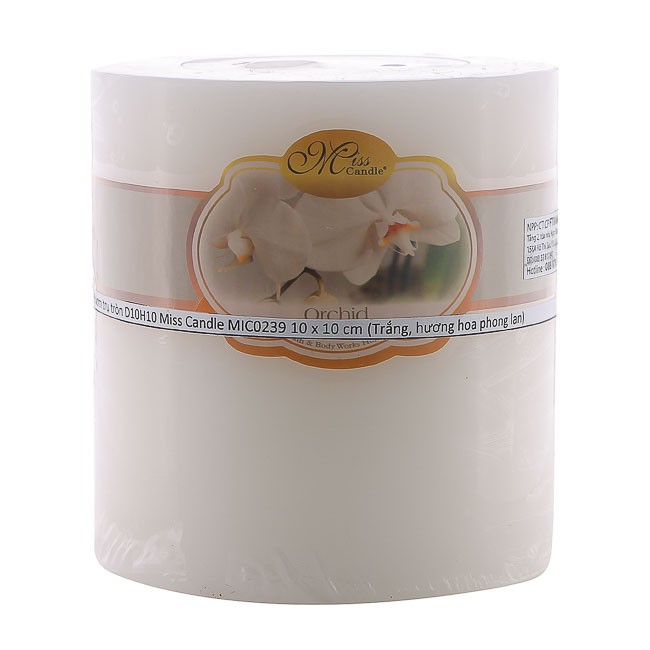 Nhà cửa & Đời sống > Trang trí nhà cửa > Nến & đồ đựng nến || Nến thơm trụ tròn D10H10 Miss Candle MIC0239 10 x 10 cm (Trắng, hương hoa phong lan)Còn hàng