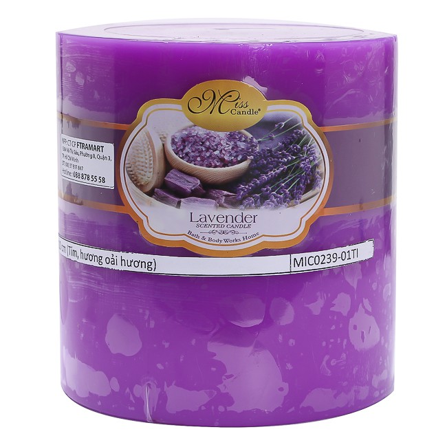 Nhà cửa & Đời sống > Trang trí nhà cửa > Nến & đồ đựng nến || Nến thơm trụ tròn D10H10 Miss Candle MIC0239 10 x 10 cm (Tím, hương oải hương)Còn hàng