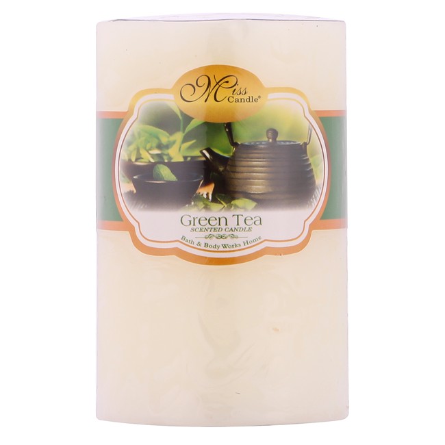 Nến thơm trụ tròn D5H8 Miss Candle NQM0819 5 x 8 cm (Vàng nhạt, hương trà xanh)