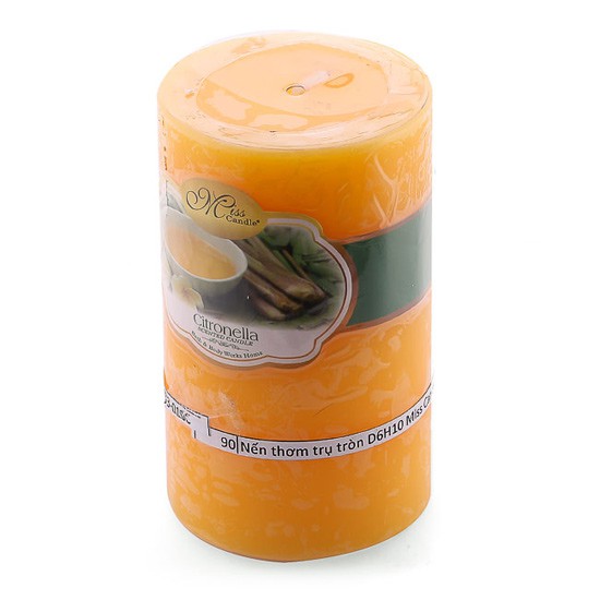 Nhà cửa & Đời sống > Trang trí nhà cửa > Nến & đồ đựng nến || Nến thơm trụ tròn D6H10 Miss Candle MIC0833 6 x 10 cm (Vàng nhạt, hương sả chanh)Còn hàng