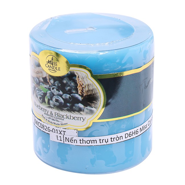 Nhà cửa & Đời sống > Trang trí nhà cửa > Nến & đồ đựng nến || Nến thơm trụ tròn D6H6 Miss Candle MIC0826 6 x 6 cm (Xanh da trời, hương quả việt quất)Còn hàng