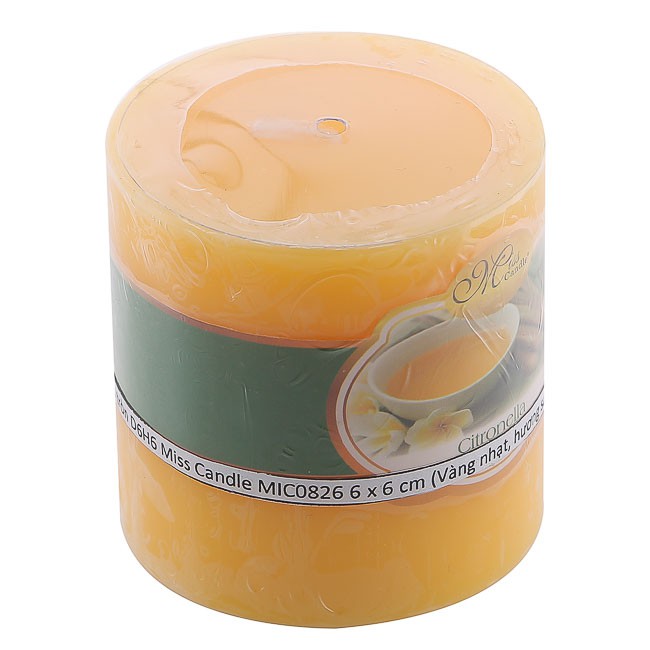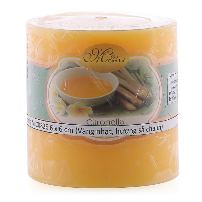 Nhà cửa & Đời sống > Trang trí nhà cửa > Nến & đồ đựng nến || Nến thơm trụ tròn D6H6 Miss Candle MIC0826 6 x 6 cm (Vàng chanh, hương sả chanh)Còn hàng