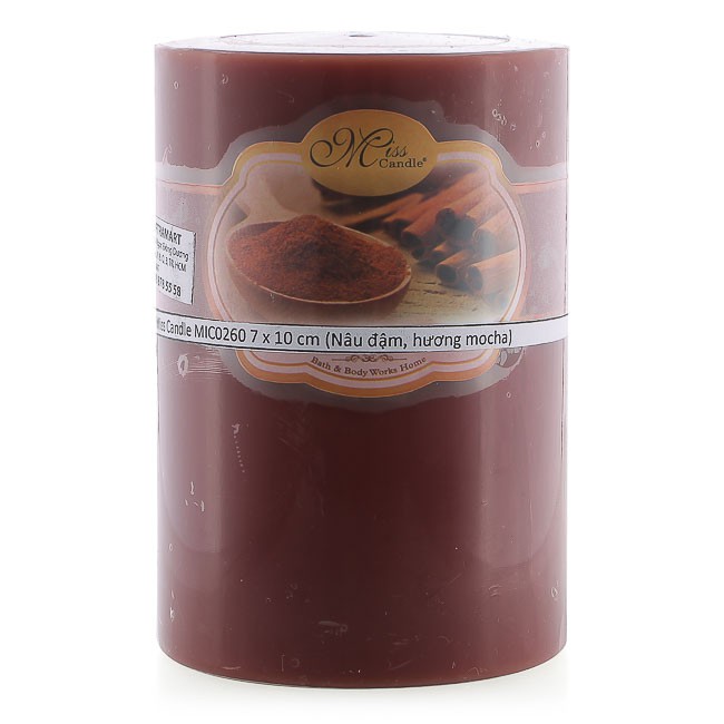 Nhà cửa & Đời sống > Trang trí nhà cửa > Nến & đồ đựng nến || Nến thơm trụ tròn D7H10 Miss Candle FTRAMART MIC0260 7 x 10 cm (Nâu đậm, hương quế)Còn hàng