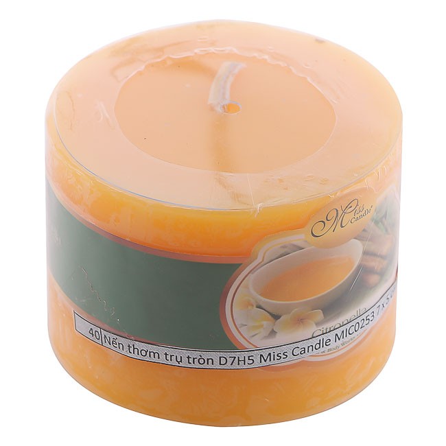 Giới thiệu Nến thơm trụ tròn D7H5 Miss Candle MIC0253 7 x 5 cm (Vàng chanh, hương sả chanh)