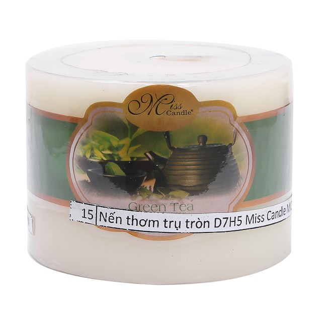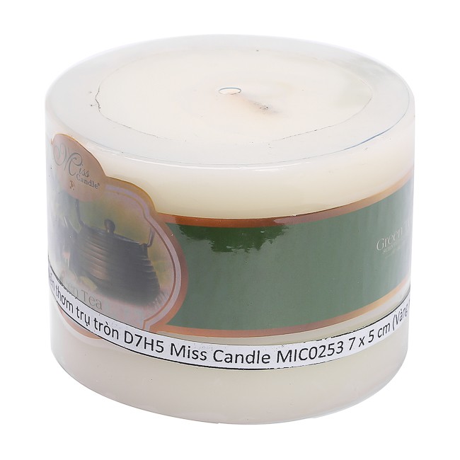 Giới thiệu Nến thơm trụ tròn D7H5 Miss Candle NQMD7H5 7 x 5 cm (Vàng nhạt, hương trà xanh)