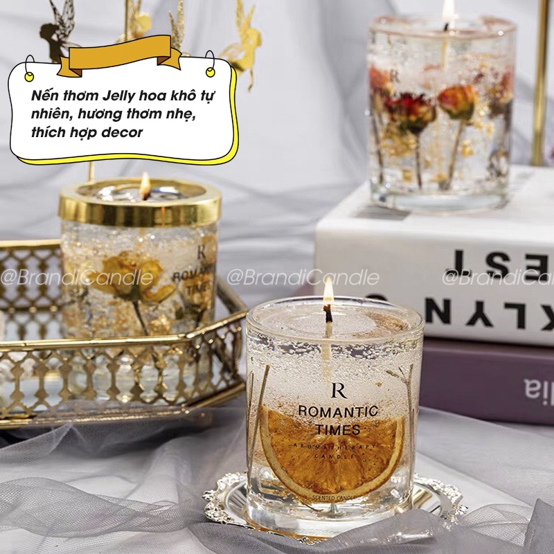 Nến trang trí jelly hoa khô hũ thủy tinh trong suốt không khói