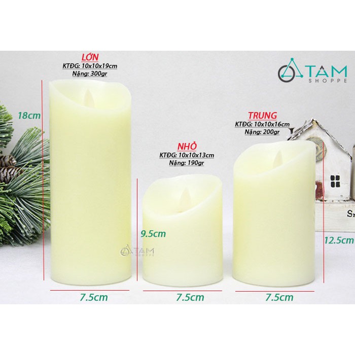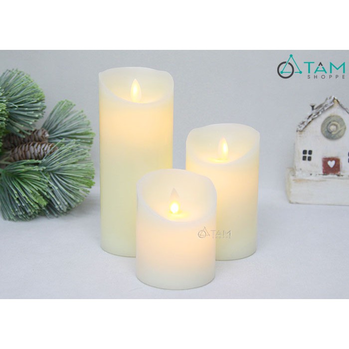Nến trụ điện tử trang trí với đường kính viên nến 7.5cm, được bao bọc bằng nến thật bên ngoài. Ngọn lửa được thiết kế lắc lư sinh động, ánh sáng đèn led màu vàng ấm y như đốt nến thật. Nến có các chiều cao khác nhau, thích hợp trang trí nhiều không gian. Tiện lợi trang trí nhanh gọn chỉ với 3 viên pin tiểu, không lo sợ hỏa hoạn trong các bữa tiệc nữa rồi.>>> CHI TIẾT SẢN PHẨM: