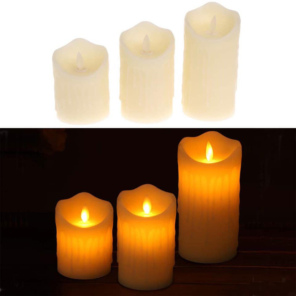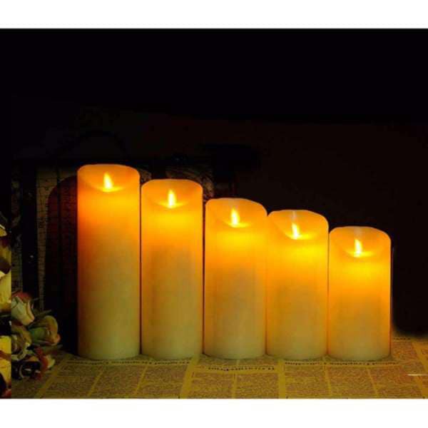 Bộ Nến Trụ Điện Tử Trang Trí 4 Cây Vỏ nhựa Cao 7,5 / 10/ 12,5/ 15cmChiều rộng chung là 5,3 cm