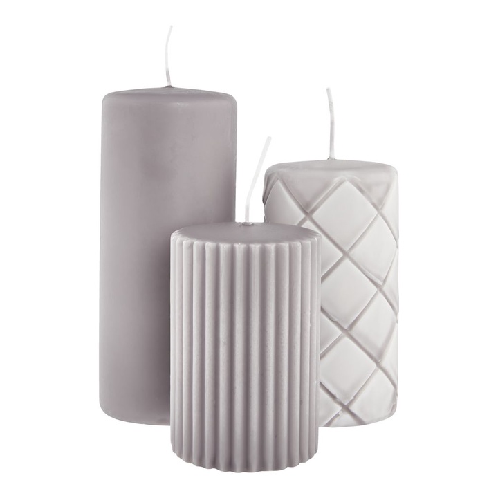 Nhà cửa & Đời sống > Trang trí nhà cửa > Nến & đồ đựng nến || Nến trụ | JYSK Alfred | bộ 3 chiếc | paraffin | xám | DK6xC9/11/14cmCòn hàng