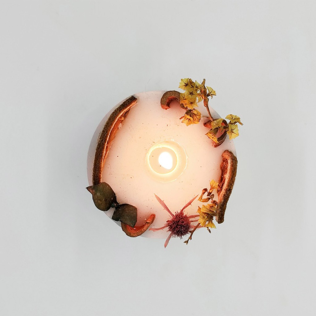 Nhà cửa & Đời sống > Trang trí nhà cửa > Nến & đồ đựng nến || Nến trụ trang trí hoa khô tự nhiên, Hương thơm tinh dầu thiên nhiên Handmade by Oniõ, Kích thước 6x3,5cmCòn hàng