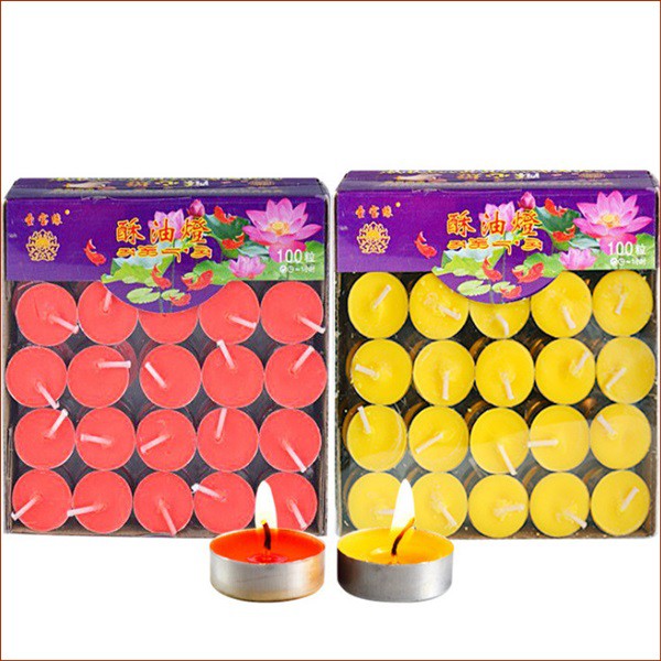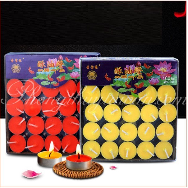 Nhà cửa & Đời sống > Trang trí nhà cửa > Nến & đồ đựng nến || Nến viên Bơ TEALING 1giờ 100 viên (đỏ, vàng) 100 nến/hộp(vòng nhôm 2.5cm)Còn hàng