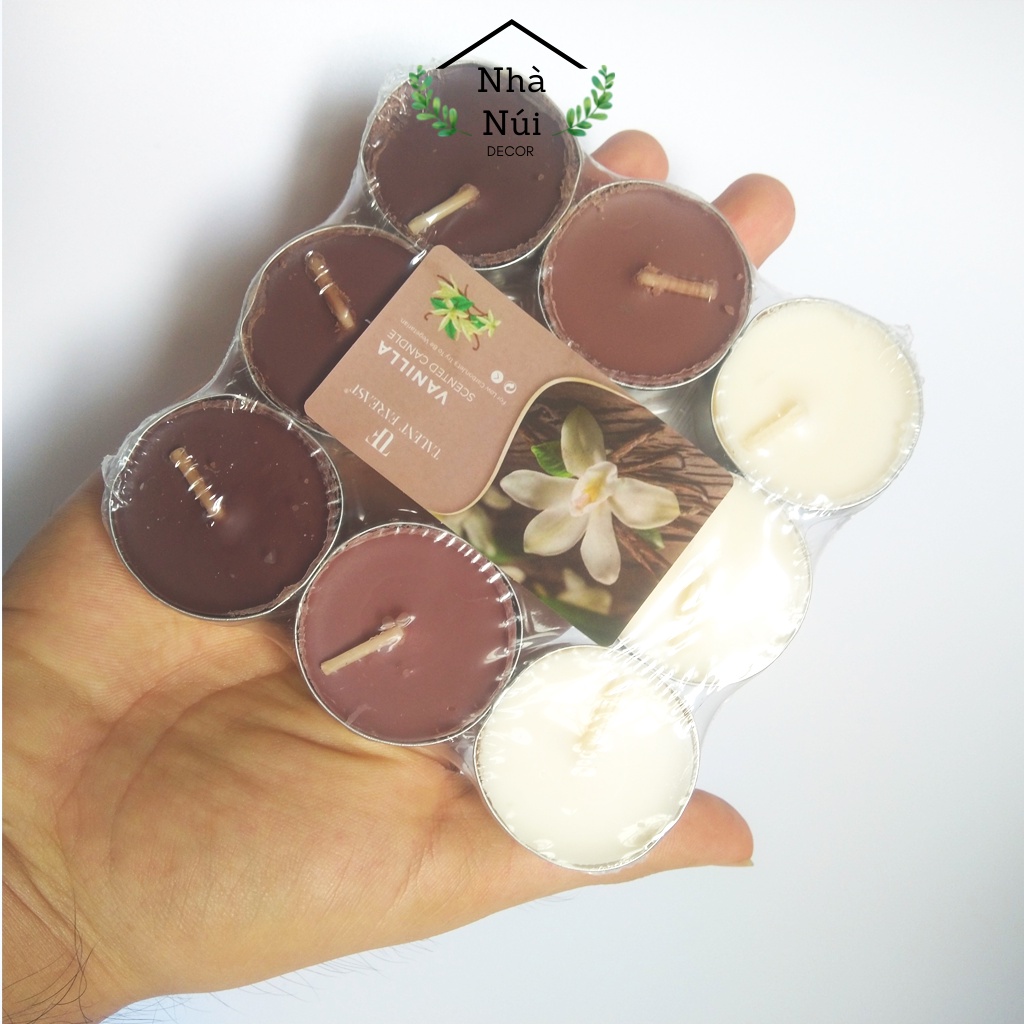 Tên sản phẩm: Nến viên thơm phòng Tealight mini trang trí đốt đèn xông tinh dầu, ấm trà, nhiều mùi hương E2, đường kính 3,5cmNHÀ NÚI CAM KẾT:
